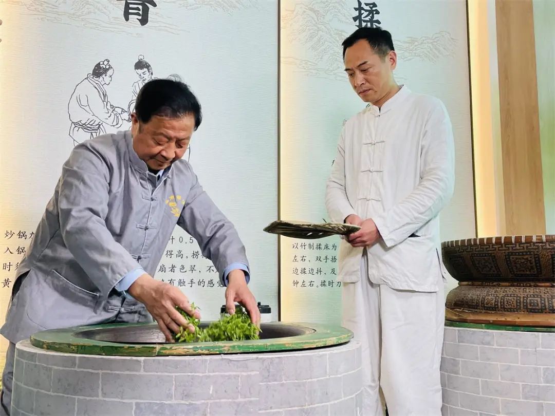非遗工作室内,传承人现场教授非遗技艺松萝茶制作过程,与松萝茶爱好者,共制一杯松萝茶,推广传承技艺,宣传松萝制法。
