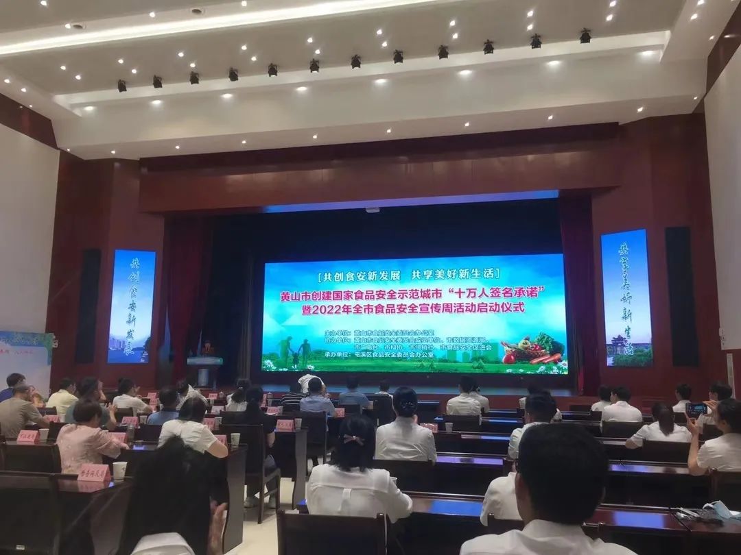 7月26日上午,黄山市创建国家食品安全示范城市“十万人签名承诺”暨2022年全市食品安全宣传周活动启动仪式在屯溪举行。市人大常委会副主任汪义生、市政协副主席徐德书出席并宣布活动启动。松萝茶业副总吴伟伟参加本次仪式。